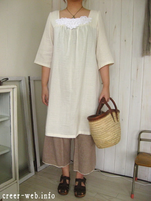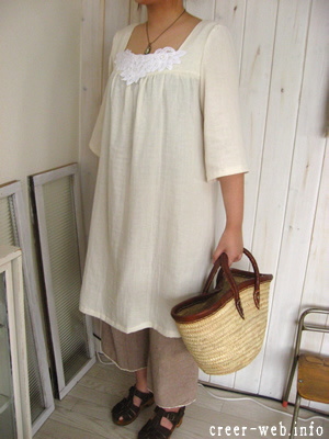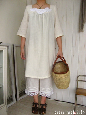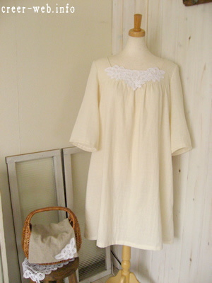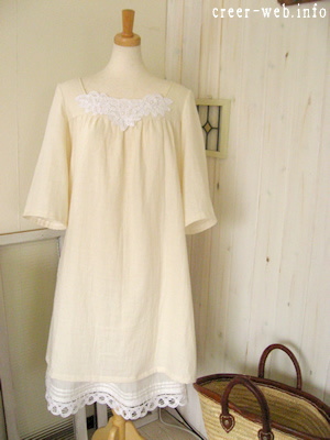 <Wガーゼ>バテンレース 五分袖ワンピ